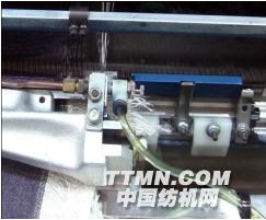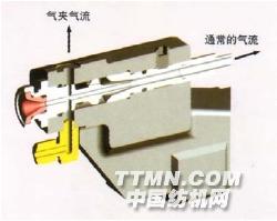 f.主噴嘴加裝緯紗夾(AGS),不引緯時(shí)用較小壓力的氣流在緯紗的垂直方向夾持住緯紗,防止彈力紗脫離主噴嘴(見圖 5—23);