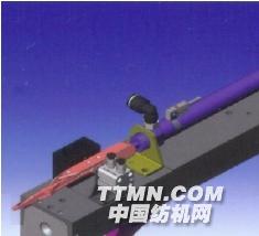 b.引緯系統(tǒng):?jiǎn)蝹?cè)模組化的氣動(dòng)原件推動(dòng)剛性劍桿往復(fù)運(yùn)動(dòng),配有無(wú)需調(diào)整的緯紗剪刀