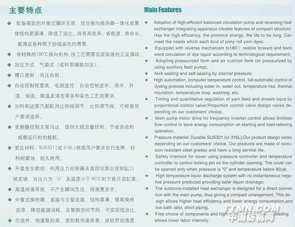 本廠技術(shù)力量雄厚,主要產(chǎn)品包括常溫常壓散纖維染色機(jī)、高溫高壓染布機(jī)、常溫常壓染布機(jī)、高溫高壓筒子染紗機(jī)、高溫高壓經(jīng)軸染紗機(jī)等。為了提升整廠自動(dòng)化設(shè)備之規(guī)劃設(shè)計(jì)能力,我們不斷從事染整機(jī)械功能之提升與制造技術(shù)之改良等。并配合現(xiàn)有技術(shù)群,繼續(xù)致力于國內(nèi)自動(dòng)化設(shè)備之研究開發(fā)。堅(jiān)持"想客戶所想"走節(jié)能、環(huán)保型道路,制造出適合現(xiàn)代染整企業(yè)所適用的一流的染整設(shè)備。