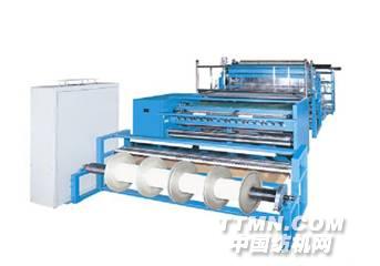 主要用于加工紡織玻璃纖維,應(yīng)用于運動設(shè)備,機動車車身和船體等生產(chǎn)領(lǐng)域。從筒子架傳來的具有一定門幅的玻璃纖維經(jīng)過縫編機后面的短切裝置,被切割成小段玻璃原絲(長度可以通過預(yù)先設(shè)定),短切后的玻璃原絲以氈片形式通過輸送帶傳送到主機進行縫編。隨機附帶的開幅機構(gòu)使得輸出的成品可以按照不同幅寬進行切割。
