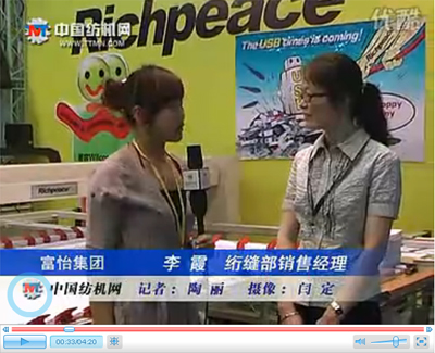 今年六月,在2010年中國國際紡織機(jī)械展覽會(huì)暨ITMA亞洲展覽會(huì)上,富怡集團(tuán)絎縫部銷售經(jīng)理李霞女士接受了記者的采訪。