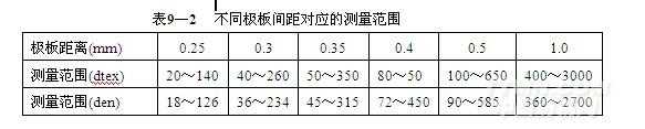 b.測量范圍:根據(jù)不同的極板間距共分6檔 (表9—2);