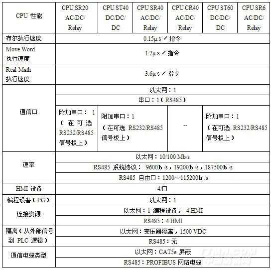 在展會上展出的可編程控制器S7-200SMART是西門子最新推出的 1 款 CPU,其性能如表所示: