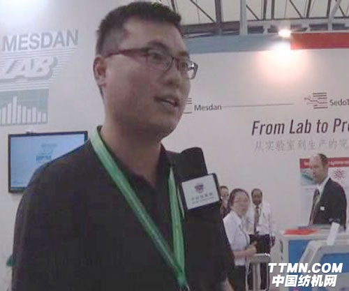 為了將上海豐易本次產(chǎn)品更加清楚的展示在世人面前,中國紡機網(wǎng)記者特地前往展臺對上海豐易紡織科技有限公司區(qū)域經(jīng)理胡幫杰進(jìn)行了相關(guān)訪談。