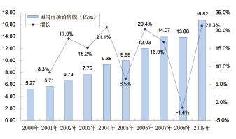 據(jù)統(tǒng)計,國內(nèi)針布銷售額從2000年的5.3億元提高到2009年的16.8億元,年均復(fù)合增長率為13.8%。2010年是紡織業(yè)發(fā)展較快的一年,國內(nèi)針布市場銷售額達到20.5億元,較2009年增長21%以上。