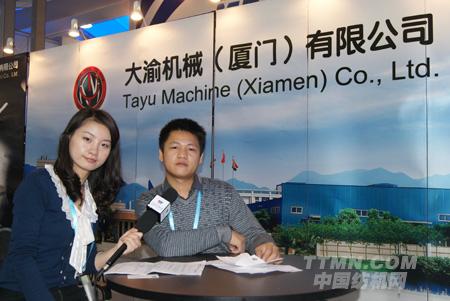 中國紡機網(wǎng)記者與大渝機械(廈門)有限公司代表合影