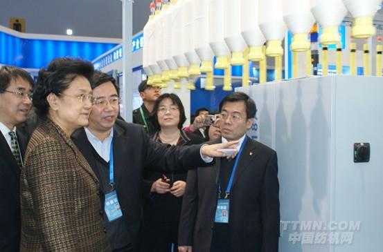 國務(wù)委員劉延?xùn)|參觀國家十一五成就展經(jīng)緯粗細(xì)絡(luò)聯(lián)合機(jī)展臺
