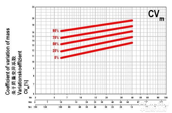 數(shù)據(jù)量實(shí)在太大,直接比較紗線的質(zhì)量參數(shù)就變得非常的困難,但這時(shí)也出現(xiàn)了新的契機(jī)。烏斯特?公報(bào)轉(zhuǎn)變成為一個(gè)標(biāo)桿基準(zhǔn)工具。這個(gè)創(chuàng)新也就是,我們不再列出絕對數(shù)值,而是將數(shù)據(jù)成標(biāo)準(zhǔn)類別:5%、25%、50%、75%和95%。這些就成了烏斯特?公報(bào)的百分比數(shù)值,基于全球紡紗廠生產(chǎn)的每一個(gè)紗線品種的質(zhì)量水平對某一個(gè)具體參數(shù)進(jìn)行比較。