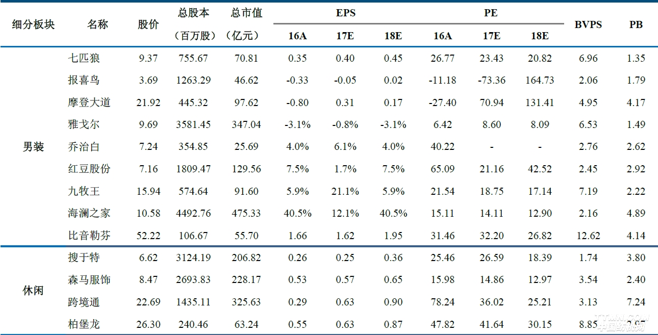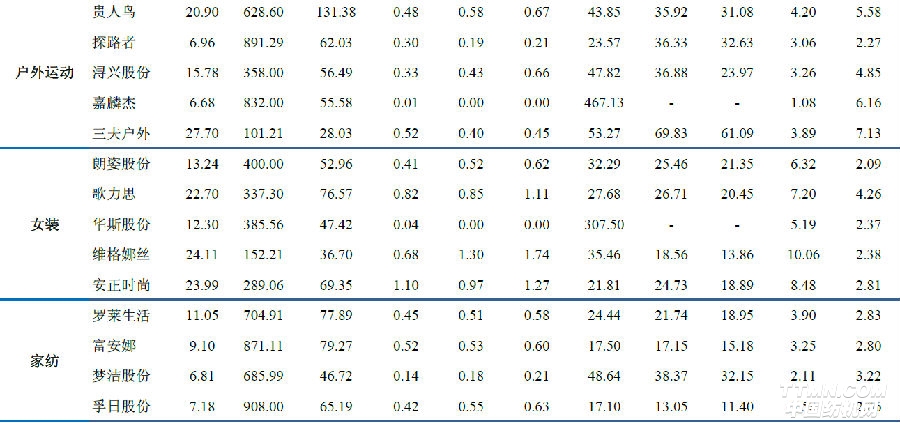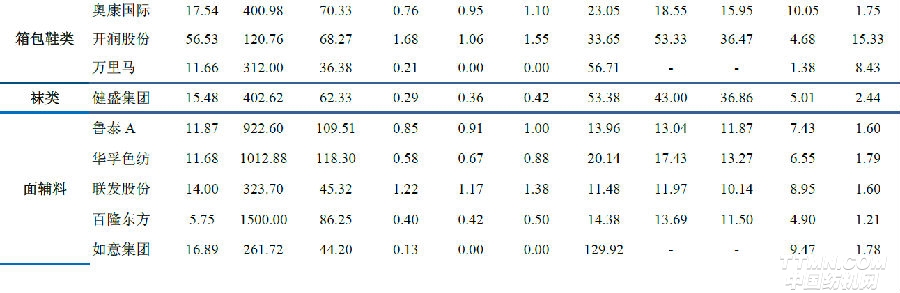 以下是紡織服裝行業(yè)重點(diǎn)公司估值表: