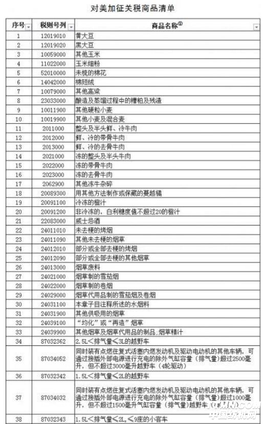 一、加征關(guān)稅的商品為大豆、汽車、化工品等14類106項(xiàng)商品。征稅范圍詳見附表。