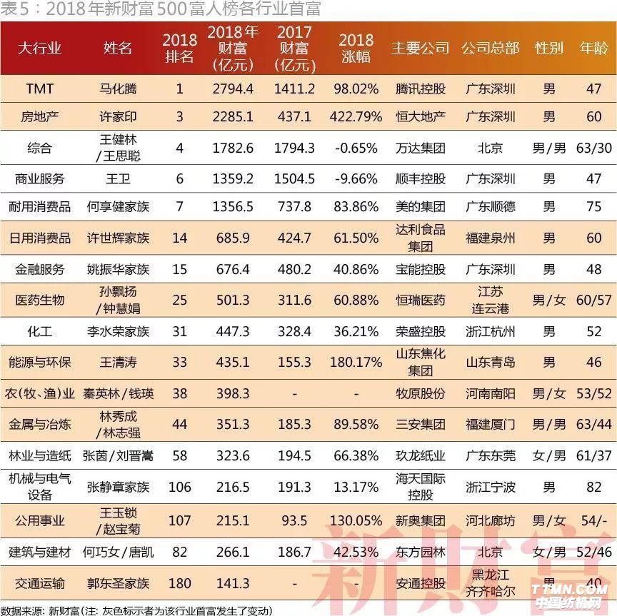 昨天,新財(cái)富雜志照例發(fā)布《2018新財(cái)富500富人榜》,這是史上第一次,中國前十大富人的身家均升至1000億元之上。而馬化騰取代王健林成為中國首富,IT行業(yè)已占到榜單1/5。