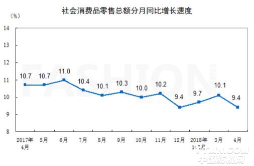 周二統(tǒng)計局公布的數(shù)據(jù)顯示,在去杠桿、流動性收緊的情況下,內(nèi)需持續(xù)走軟,4月中國零售市場增長繼續(xù)探底,同比名義增長9.4%(扣除價格因素實際增長7.9%,以下除特殊說明外均為名義增長),為過去12月來最差。