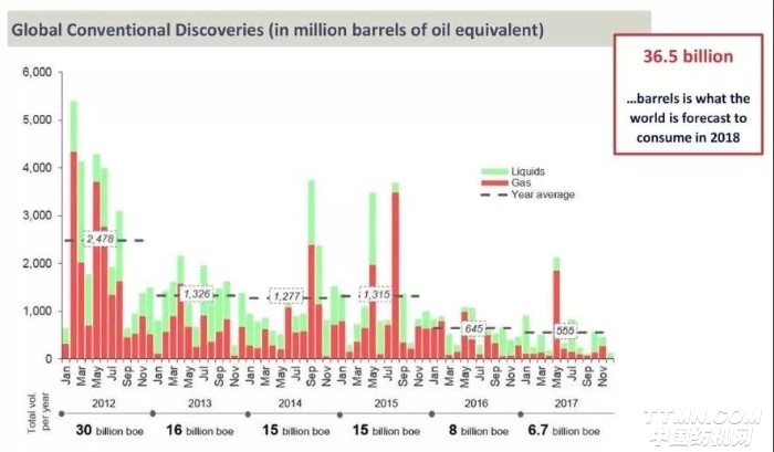 如果限產(chǎn)協(xié)議就這么瓦解了,那么需求有沒有可能出現(xiàn)爆發(fā)來彌補庫存的增漲。根據(jù)EIA的測算,2018年全球?qū)⑾M365億桶原油,但是2017年傳統(tǒng)能源(包括液體石油和天然氣)新增產(chǎn)量只有67億桶,而且基本呈逐年下降趨勢。目前來看還是供小于求。