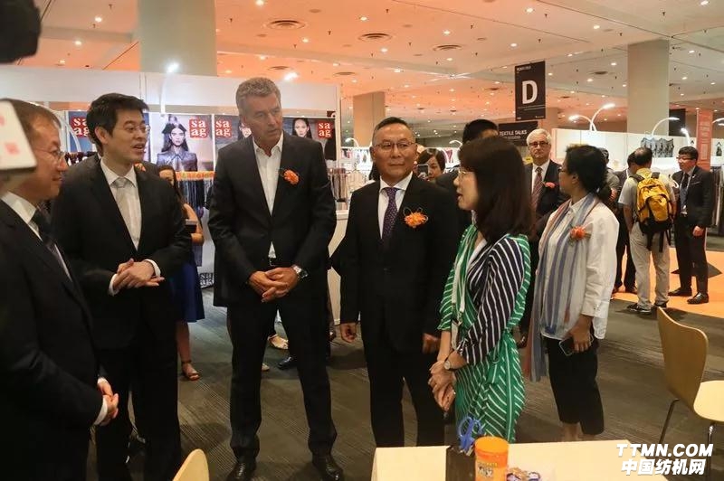 中國紡織工業(yè)聯(lián)合會副會長,中國國際貿(mào)易促進委員會紡織行業(yè)分會常務(wù)副會長徐迎新、中國駐紐約總領(lǐng)事館代總領(lǐng)事趙宇敏、商務(wù)參贊周善青、中國針織工業(yè)協(xié)會副會長瞿靜、南京市商務(wù)局副局長李大軍、深圳內(nèi)衣協(xié)會常務(wù)副會長張峰偉、德國法蘭克福展覽公司董事Detlef Braun、法蘭克福展覽美國公司總裁Dennis Smith、法蘭克福展覽(香港)有限公司高級總經(jīng)理溫婷、法蘭克福展覽(上海)有限公司總經(jīng)理趙慰平、美國時尚產(chǎn)業(yè)協(xié)會董事會主席Michael Singer、美國時尚產(chǎn)業(yè)協(xié)會會長Julia K. Hughs出席開幕式并剪彩。