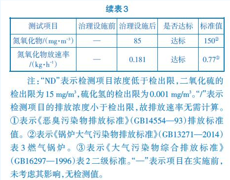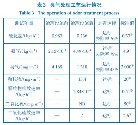 該臭氣處理工程完工后,系統(tǒng)運行情況良好,臭氣處理效果達到標準要求,主要污染物硫化氫、氨氣、臭氣去除率分別為76%、79%、45%。具體運行情況見表3。