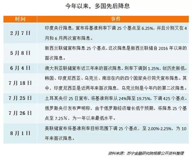 全球“降息潮”愈演愈烈!截至2019年8月12日,包括美國(guó)、新西蘭、澳大利亞等發(fā)達(dá)國(guó)家在內(nèi)的20余個(gè)國(guó)家,先后降息。