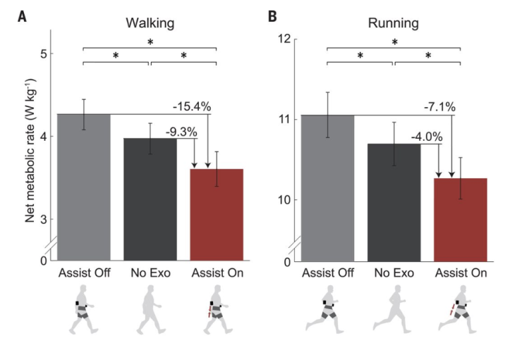 “穿上這套系統(tǒng)十幾分鐘后,你會(huì)有點(diǎn)懷疑它是不是真有用,因?yàn)槟阒荒芨杏X到自己在正常走路。”哈佛大學(xué) Wyss 研究所工程師 David Perry 描述道,“然而,一旦你把系統(tǒng)關(guān)閉,你就會(huì)突然感覺兩條腿灌了鉛似的沉。這就好像你從機(jī)場傳送帶上下來的瞬間,才意識(shí)到在傳送帶上跑得有多快一樣?!?/p>