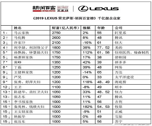 10月10日,胡潤研究院發(fā)布了《2019胡潤百富榜》,榜單顯示,1819位企業(yè)家財富超過20億,比去年1893人減少4%(74人)。其中,19人財富上千億,比去年驟增7人,為歷年最多。
