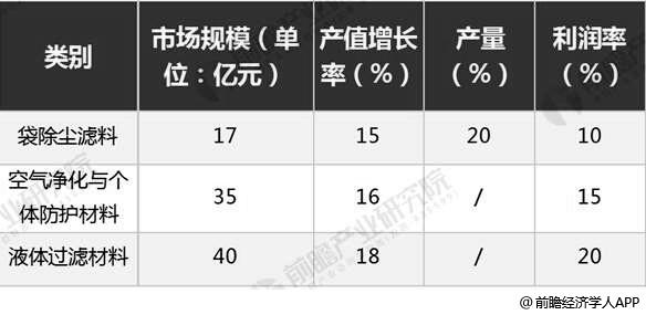 空氣凈化與個體防護材料創(chuàng)新在持續(xù)推進,2018年空氣凈化與個體防護濾料市場規(guī)模35億元左右,產(chǎn)值增長率16%,利潤率15%。
