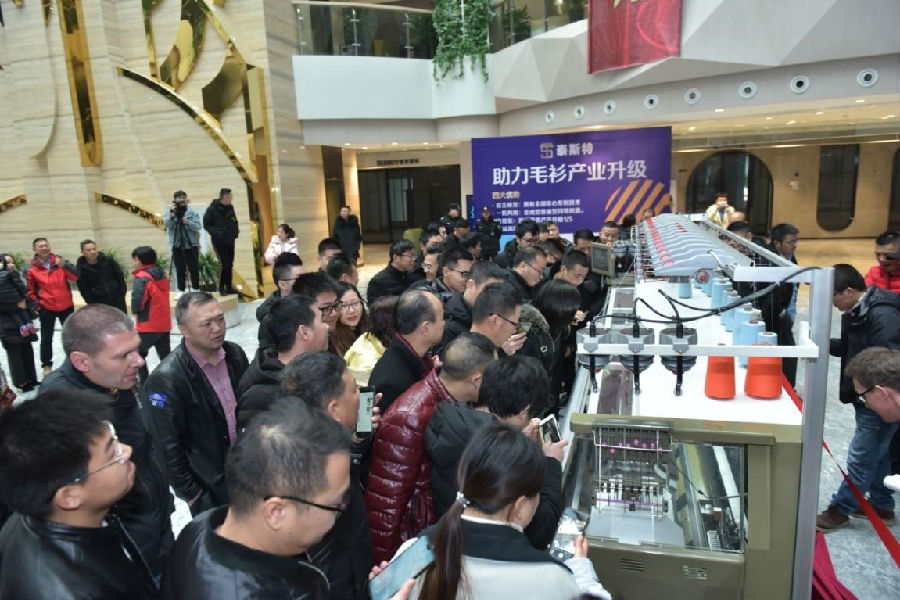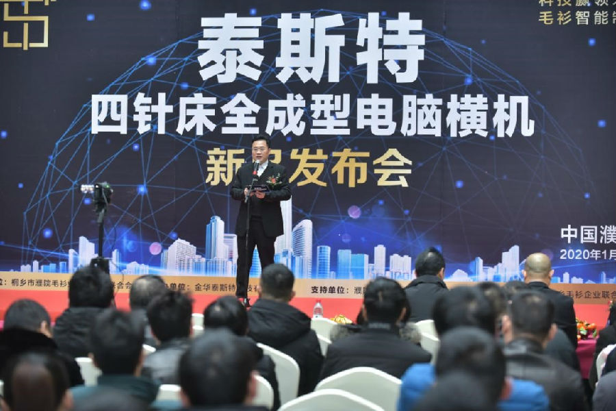 1月9日,濮院世博原創(chuàng)中心中央大廳,泰斯特四針版全成型電腦橫機F8188新品發(fā)布會與市場啟動儀式隆重舉行。