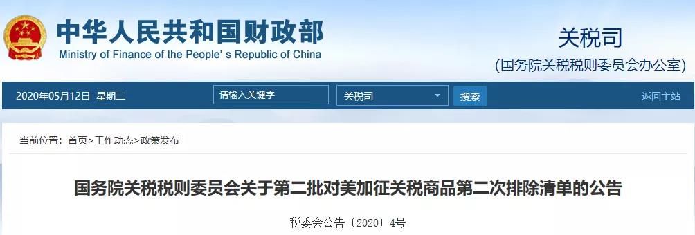 根據(jù)《國務(wù)院關(guān)稅稅則委員會關(guān)于試行開展對美加征關(guān)稅商品排除工作的公告》(稅委會公告〔2019〕2號),國務(wù)院關(guān)稅稅則委員會組織對申請主體提出的有效申請進(jìn)行審核,并按程序決定,對第二批對美加征關(guān)稅商品,第二次排除其中部分商品,有關(guān)事項公告如下: