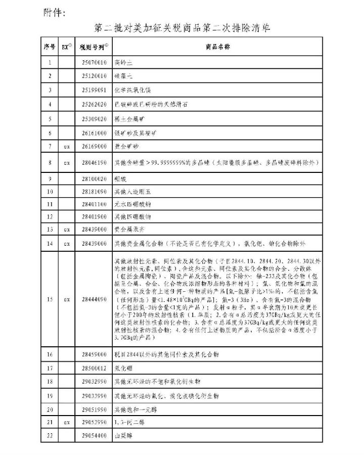 附件:第二批對美加征關(guān)稅商品第二次排除清單