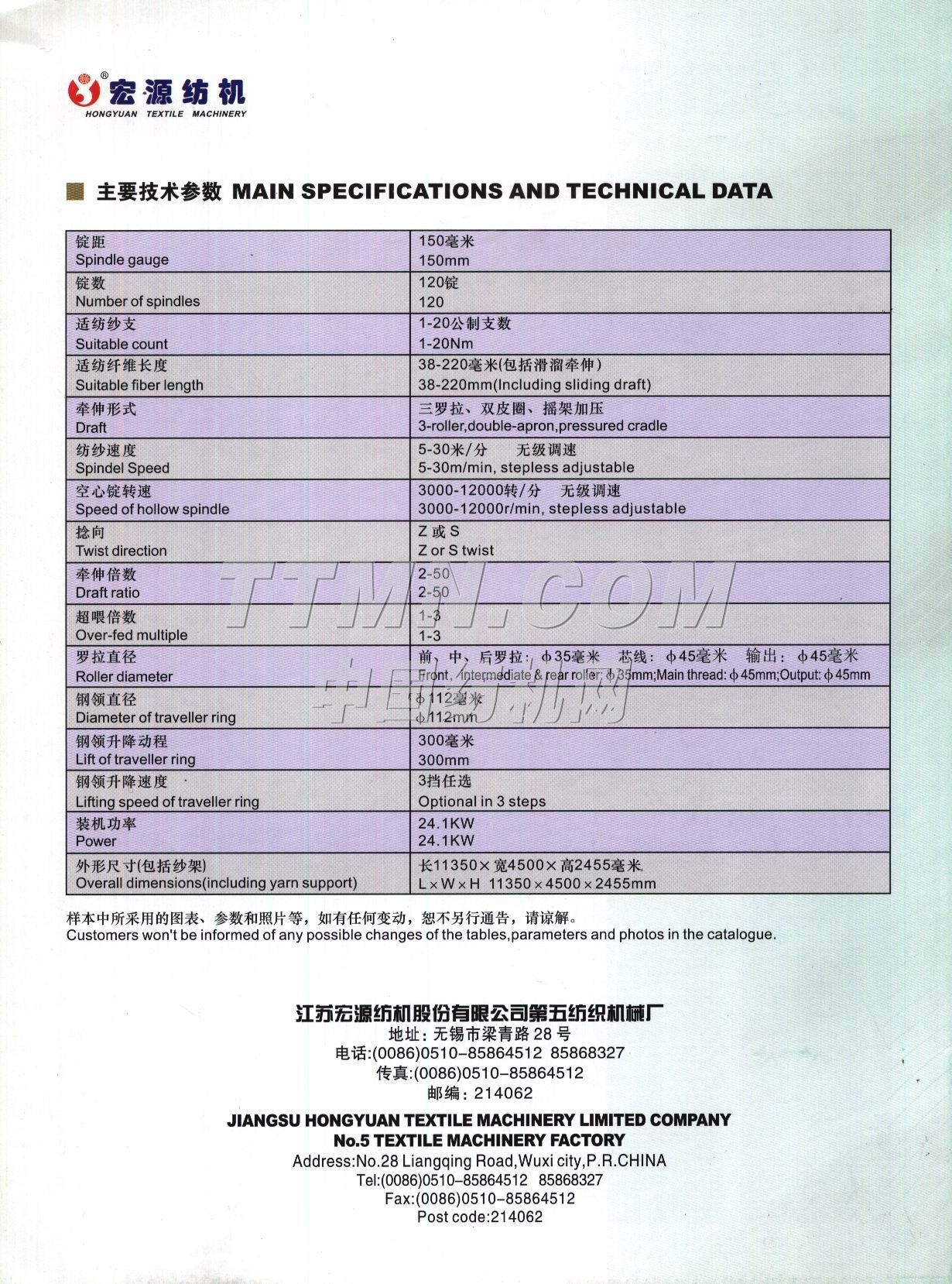 您所在的位置:紡機(jī)網(wǎng) > 紡織機(jī)械樣本庫(kù) > 江蘇宏源紡機(jī)股份有限公司