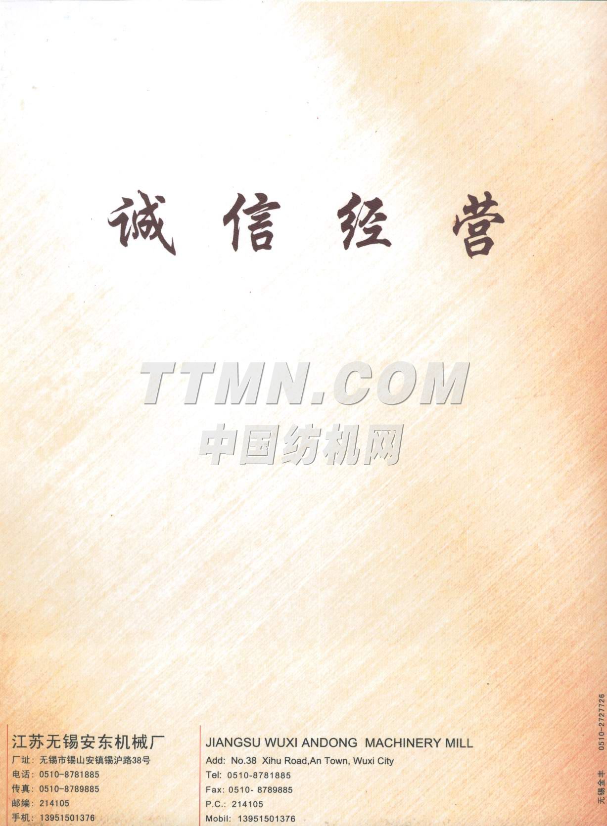 您所在的位置:紡機網(wǎng) > 紡織機械樣本庫 > 無錫市安東機械廠