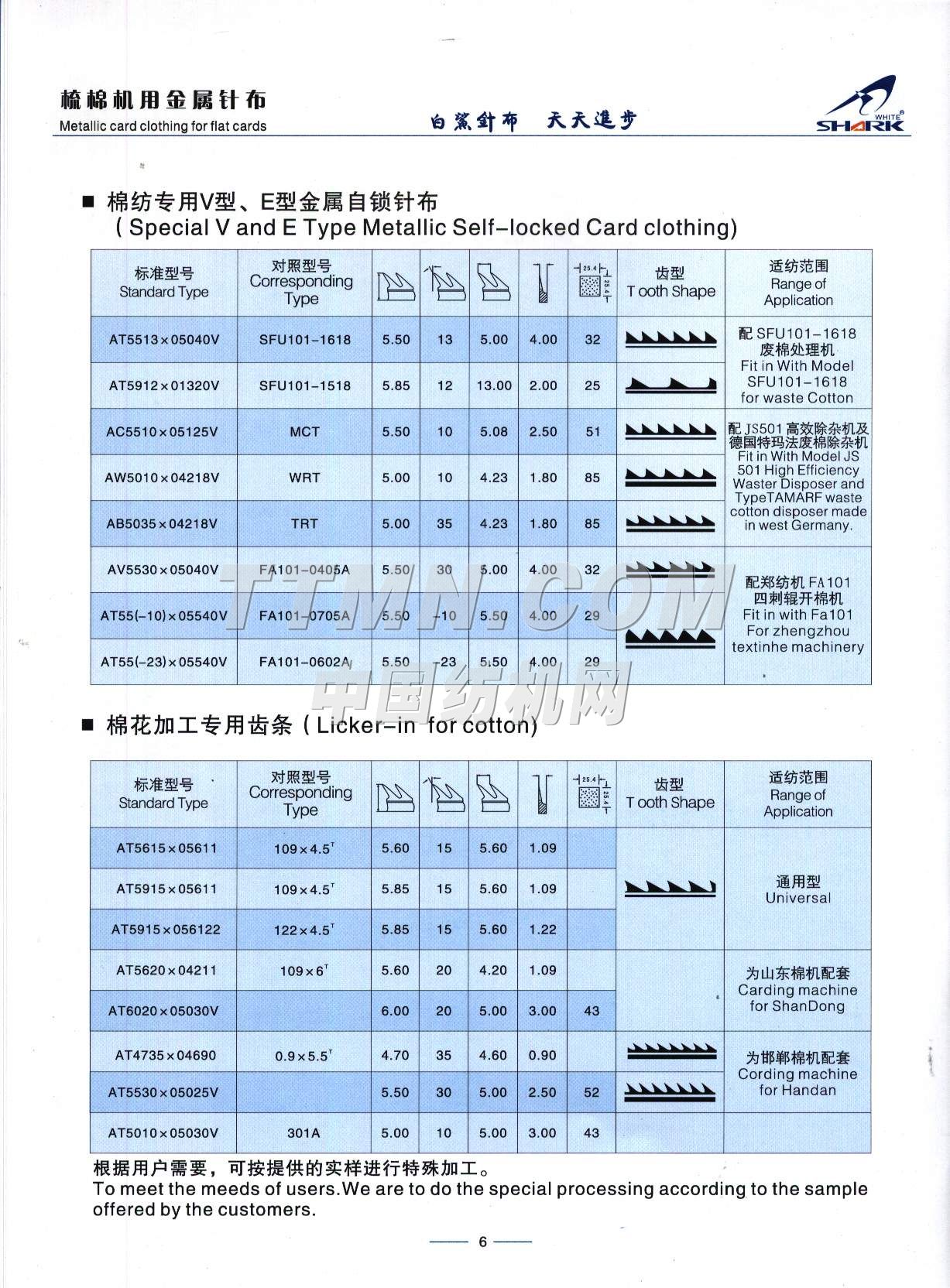 您所在的位置:紡機(jī)網(wǎng) > 紡織機(jī)械樣本庫(kù) > 光山白鯊針布有限公司