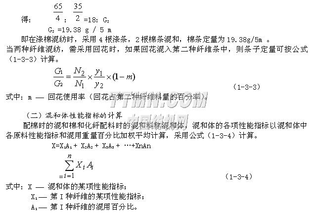 采用兩種以上纖維條混時,都可采用上式,一般采用兩種纖維條混紡。