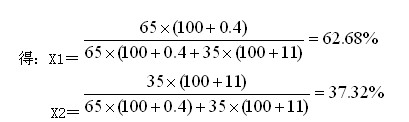 例如:滌/粘混紡設(shè)計干混比為65/35,若滌的實際回潮率為0.4%,粘的實際回潮率為11%,求兩種纖維的濕重混紡比?