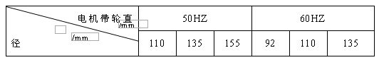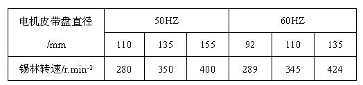 表3-5-1  錫林轉(zhuǎn)速與主電機皮帶盤直徑
