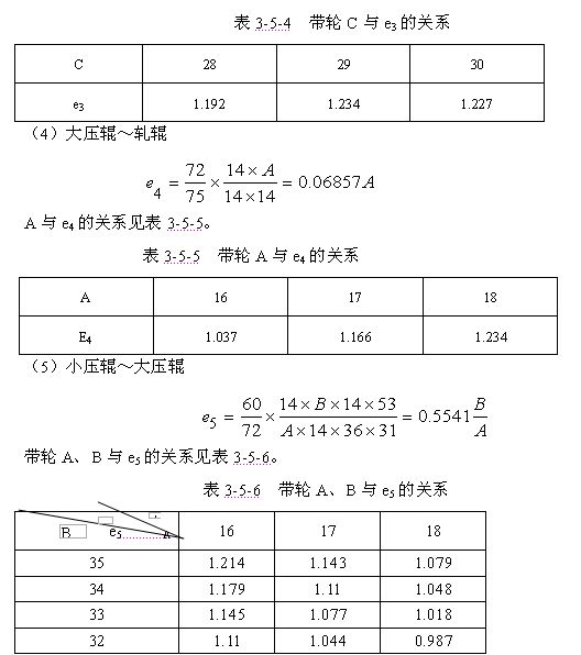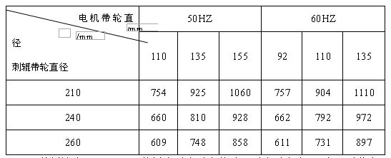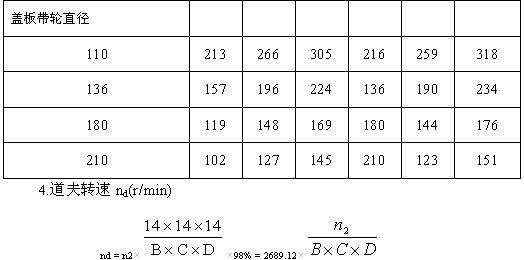 表3-5-2  剌輥轉(zhuǎn)速              單位:r/min