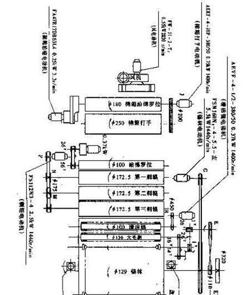 FA225型梳棉機的傳動如圖3-5-2所示。