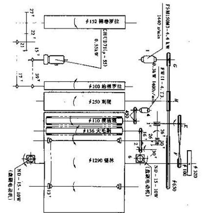 ⒉便于運轉(zhuǎn)操作  生頭時道夫需慢速,生頭后向快速轉(zhuǎn)換時,道夫應(yīng)有一個逐步增速的過程;錫林為負荷中心,起動也應(yīng)具有良好的起動性,并便于起動操作,同時還應(yīng)給抄磨針準備傳動輪。