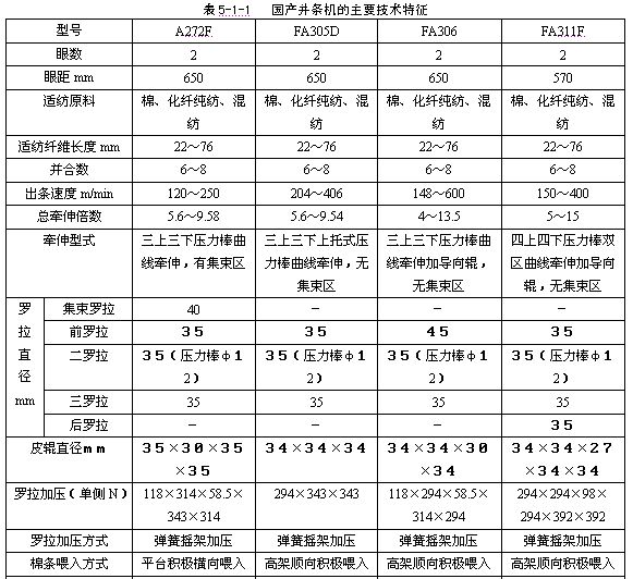 建國前我國的紡紗技術及設備落后,主要依靠進口設備。設備陳舊落后,工藝流程長(多采用三道并條),棉條質量差。建國后,我國并條機的發(fā)展非常迅速,可分為三個階段,第一個階段是在50年代中期到60年代初期生產(chǎn)的第一代“1”字號并條機,如1242、1243、1241型,出條速度在40m/min以下,因其型號陳舊,加工質量差,效率低,已經(jīng)淘汰;60年代中期生產(chǎn)的第二代“A”系列并條機,如A272A、B、C型,A272F型等,設計速度提高為200~250m/min(實際生產(chǎn)速度為180~220m/min);改革開放以來,在消化吸收國外先進技術的基礎上,我國又研制生產(chǎn)了一批具有高速度、高效率、高質高產(chǎn),自動化程度較高的第三代FA系列并條機,例如FA302、FA303、FA305、FA306、FA311、FA322型,其出條速度為150~600m/min。隨著并條工序對質量重要性認識的深化,國內(nèi)外新型的并條機已采用了各種新技術,使并條機在提高速度的同時,熟條質量也進一步得以提高。