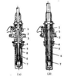 (1)分離式錠膽:如圖7—3—4(1)所示,上支承2由上軸承連同軸承座壓配在錠腳3中,錠底7裝配在中心套管5中,借彈性元件組合裝配在錠腳3內(nèi)。下支撐由中心套管5、彈性圈4、隔離圈8、圈簧6組成,安裝在錠腳3中。彈性圈的內(nèi)圈與中心套管緊密配合,外圈與錠腳保持較小間隙,起確定錠子中心和下支撐的橫向、縱向支撐作用。圈簧由彈簧鋼皮卷成,當(dāng)錠桿振動使下支撐偏離時能自調(diào)中心,同時利用各圈簧之間形成的多層油膜的粘性阻尼起到吸振作用。目前廣泛使用的這類錠子是D1200系列高速錠子,F(xiàn)A506型細(xì)紗機(jī)可配用該系列錠子。