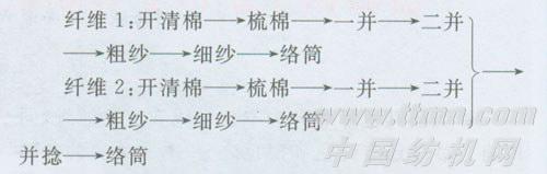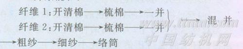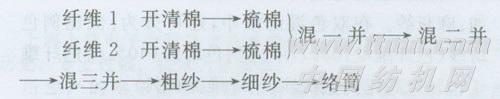 這種混和方法適合于兩種性能相近的纖維,混色較為均勻,工藝流程非常簡單,生產(chǎn)管理的難度較小。