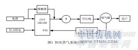 空氣壓縮機采用變頻調速技術進行恒壓供氣控制時,系統(tǒng)原理框圖如圖1所示。