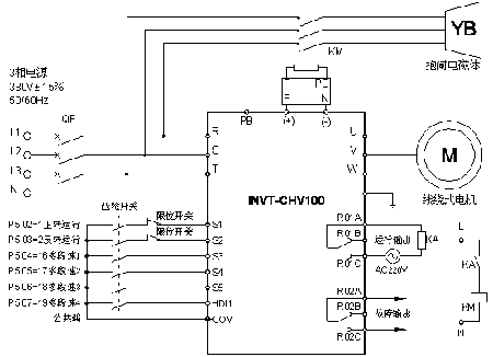 1、提升電機(jī)的變頻器需選配PG卡,采用有PG矢量控制;其余變頻器均采用無PG矢量控制;