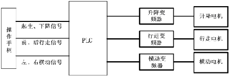 當(dāng)然,對于一些高檔提升機(jī)械,還會應(yīng)用到PLC來進(jìn)行對提升機(jī)構(gòu)、行走機(jī)構(gòu)、橫動機(jī)構(gòu)進(jìn)行集中控制,實(shí)現(xiàn)多種功能,控制簡易示圖如下: