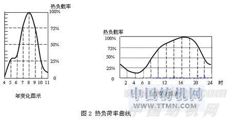 在中央空調(diào)系統(tǒng)設(shè)計時,冷凍泵、冷卻泵的電機(jī)容量是根據(jù)建筑物的最大設(shè)計熱負(fù)荷選定的,都留有一定設(shè)計余量。由于四季氣候及晝夜溫差變化,中央空調(diào)工作時的熱負(fù)荷總是不斷變化。下圖2為一民用建筑物的平均熱負(fù)荷情況: