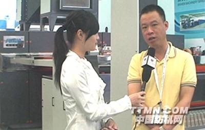 (圖為中國(guó)紡機(jī)網(wǎng)記者現(xiàn)場(chǎng)采訪無(wú)錫信文機(jī)械總經(jīng)理 華文輝)