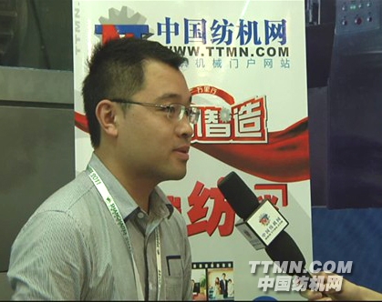 (圖為中國(guó)紡機(jī)網(wǎng)記者現(xiàn)場(chǎng)采訪博杰斯達(dá)總經(jīng)理許捷愷)