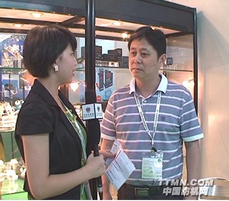 (圖一為中國紡機網(wǎng)記者現(xiàn)場采訪先達(dá)公司汪總)