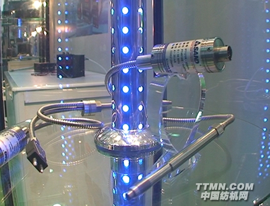 在2011上海紡機展上,先達(dá)公司總經(jīng)理汪總為我們介紹說:“我們今年主推的產(chǎn)品是我們新開發(fā)出來的一種全新理念,傳感器和儀器儀表進(jìn)行自動識別、自動調(diào)試,而且是一種比較傻瓜式的一種。只能數(shù)字化壓力測控系統(tǒng)它讓復(fù)雜的工業(yè)控制變的傻瓜化,它們采用了比較簡單的連接方式,就是采用兩線制。這兩根線無極性就是不需要方向,我們這個只能傳感器采用兩根線傳送,僅需要兩根線,而且這兩根線不需要供電,信號采用數(shù)據(jù)線和電源線共用,不需要分極性,兩根線可以任意交換,另外傳感器的數(shù)據(jù)和儀器儀表的數(shù)據(jù)可以實現(xiàn)只能診斷、簡化安裝。另外對于零點的飄雨可以實現(xiàn)一鍵清零、只能校準(zhǔn)。它的精度比常規(guī)的傳感器提高了十倍以上,抗干擾能力更強。這個是高溫熔體壓力傳感器,這塊儀表就可以在現(xiàn)場進(jìn)行壓力顯示,它的所有連接就只有兩根線,在這邊加壓就可以看到壓力。所以它的操作非常方便,而且外觀是全新