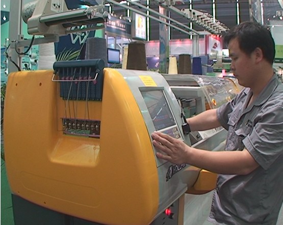 在2011上海紡機(jī)展上,中國紡機(jī)網(wǎng)的記者現(xiàn)場采訪了漢菲橫機(jī)的祝經(jīng)理,同時(shí)祝經(jīng)理為我們介紹了漢菲橫機(jī)參展的大概情況:“我們漢菲橫機(jī)呢就是第一次參加我們這個(gè)那么一個(gè)比較大型的這個(gè)國際展會(huì)。那在這個(gè)過程當(dāng)中呢,就是說我們這個(gè)漢菲橫機(jī)落座于這個(gè)浙江嘉興平湖的開發(fā)區(qū)。那么是一家這個(gè)國營型的企業(yè)。在這個(gè)過程當(dāng)中,就是我們短短的這么半年時(shí)間,在全國呢開了這個(gè)15家的這個(gè)12省直營的門店。那么今天有幸,就是第一次來參加這個(gè)展會(huì),也是感覺到非常的高興。那么在這個(gè)過程當(dāng)中呢,就是介于這個(gè)展會(huì)的一個(gè)平臺(tái),能夠得到大家的一個(gè)支持,感到非常的高興。那么,首先我們再來看一下我們幾個(gè)就是有產(chǎn)品特色的那個(gè)過程。那么本次展示呢,就是我們出列了這個(gè)國產(chǎn)機(jī)里面所有品種的一個(gè)設(shè)備展示。另外呢,還要跟大家就是特別推出一下,我們這次就是有一個(gè)全觸光屏系統(tǒng)的一個(gè)設(shè)備展示。那么請攝影師跟我這邊過來。