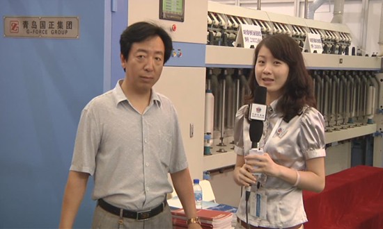 (圖為中國紡機網(wǎng)記者現(xiàn)場采訪青島國正機械有限公司副總經(jīng)理王文志)