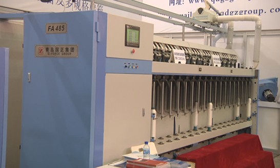 在2011上海紡機展上,青島國正機械有限公司副總經(jīng)理王文志為我們介紹了公司此次參展的概況:“這次十五屆紡展公司主要展的兩個機型,一個是四軸無差速的,四軸連動,再一個就是三軸的,也是無差速現(xiàn)在我們公司的無差速目前是國內(nèi)國際上是最先進的設(shè)備,那么這個設(shè)備一跑高速,二可以說紡紗挑桿都能提高是國內(nèi)軌跡最先進的,那么這三臺的三軸車呢,取得了國內(nèi)獨有的專利,也是未來跑高速,也是為了提高質(zhì)量,所以說這是我們公司獨有的產(chǎn)品,這是我們的專利號,目前國內(nèi)所有紡織公司做粗紗的,我們無差速是最大亮點,還有一個第二個是我們本廠的一個專利,。那么現(xiàn)在紡紗要求提桿要求提高質(zhì)量提高價,那么這一款可以緩解紗的質(zhì)量。