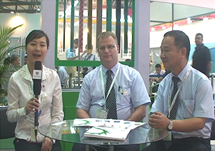 (圖為中國(guó)紡機(jī)網(wǎng)記者現(xiàn)場(chǎng)采訪布魯哈針布康經(jīng)理)